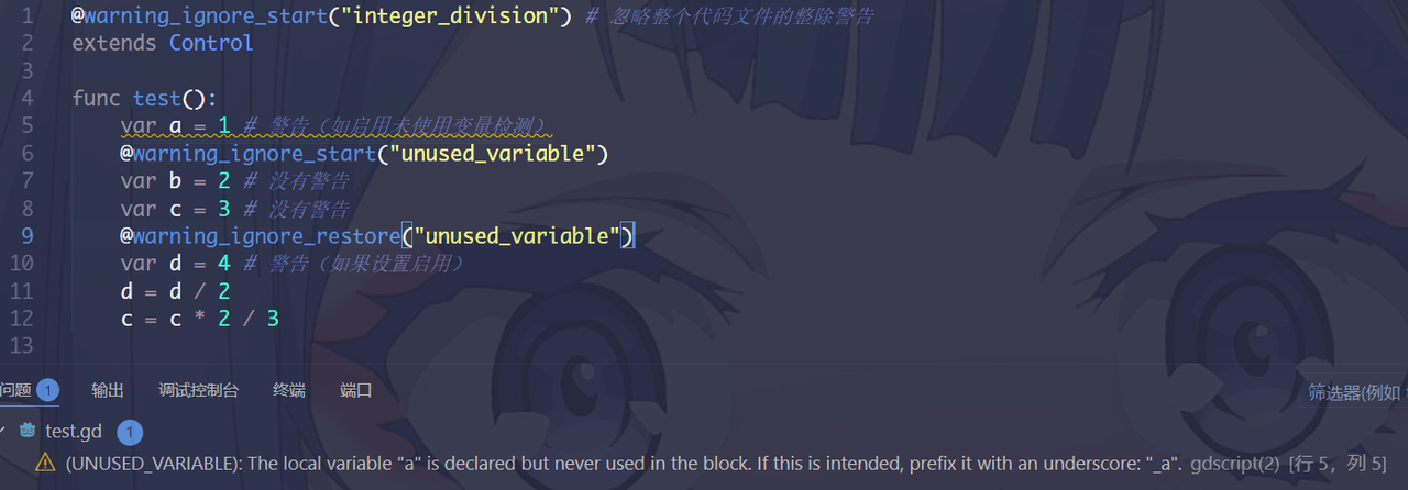 @warning_ignore_start("integer_division") # 忽略整个代码文件的整除警告