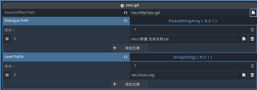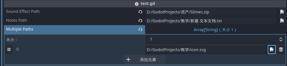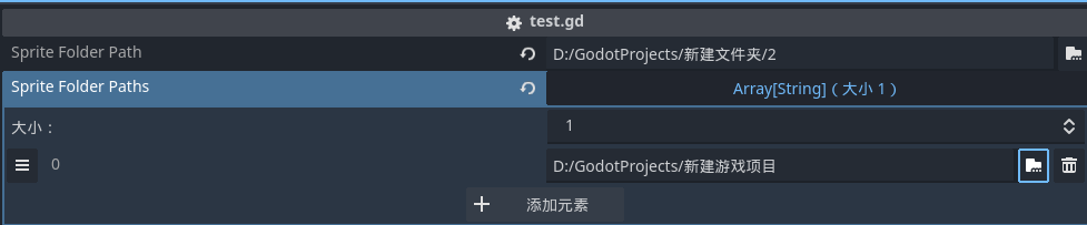 导出属性,用作指向目录绝对路径,以选择目录的形式在检查器中编辑该属性,允许选择整个文件系统中的文件夹