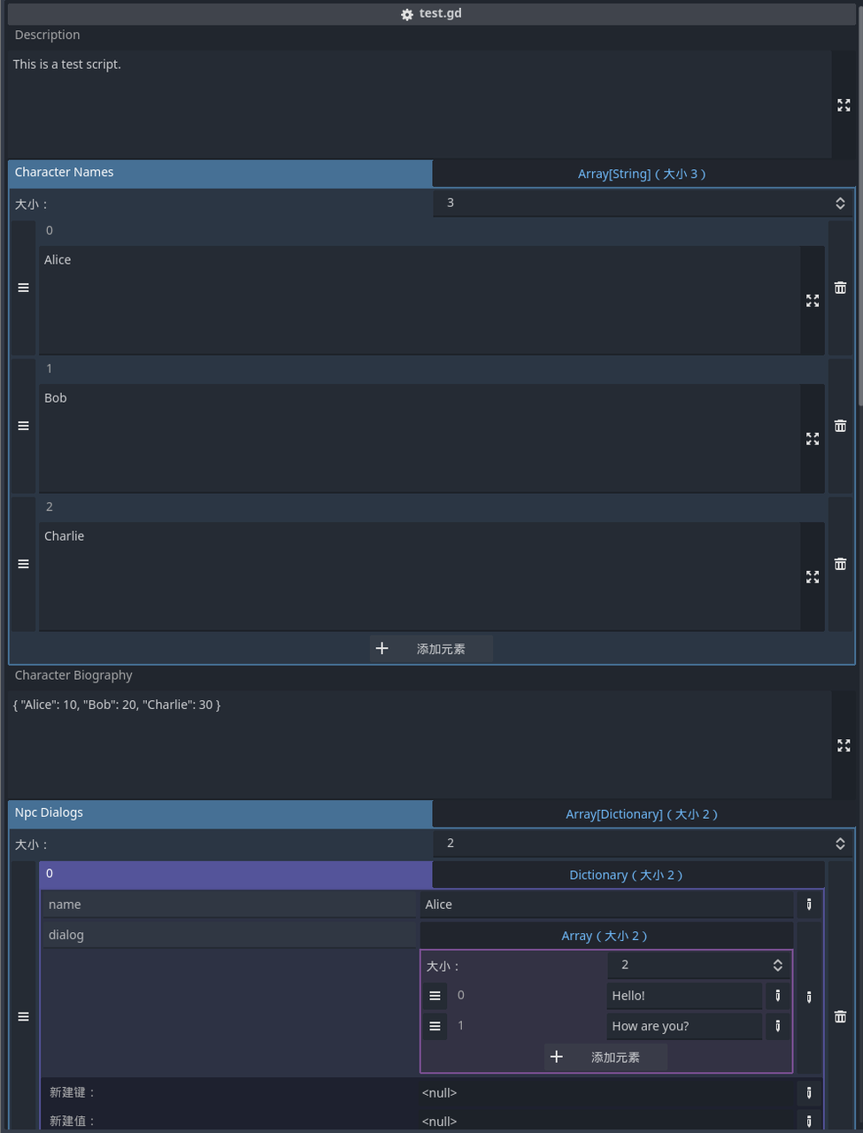 应用于Array[Dictionary]时,编辑方式和普通的@export没有区别